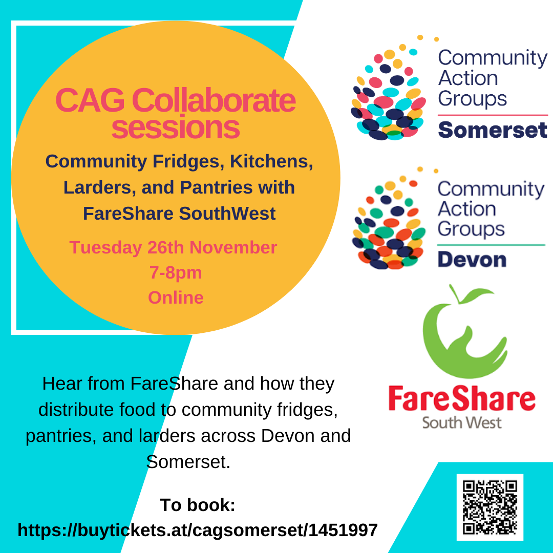 FeaturedOnlineCommunity Fridges, Kitchens, Larders and Pantries. We invite you to a free online event hosted by CAG Devon and CAG Somerset and FareShare south west. Tuesday, November 26th - 7pm to 8pm Zoom. If you're part of a CAG Somerset or CAG Devon community group and want to learn more about how FareShare operates, this…