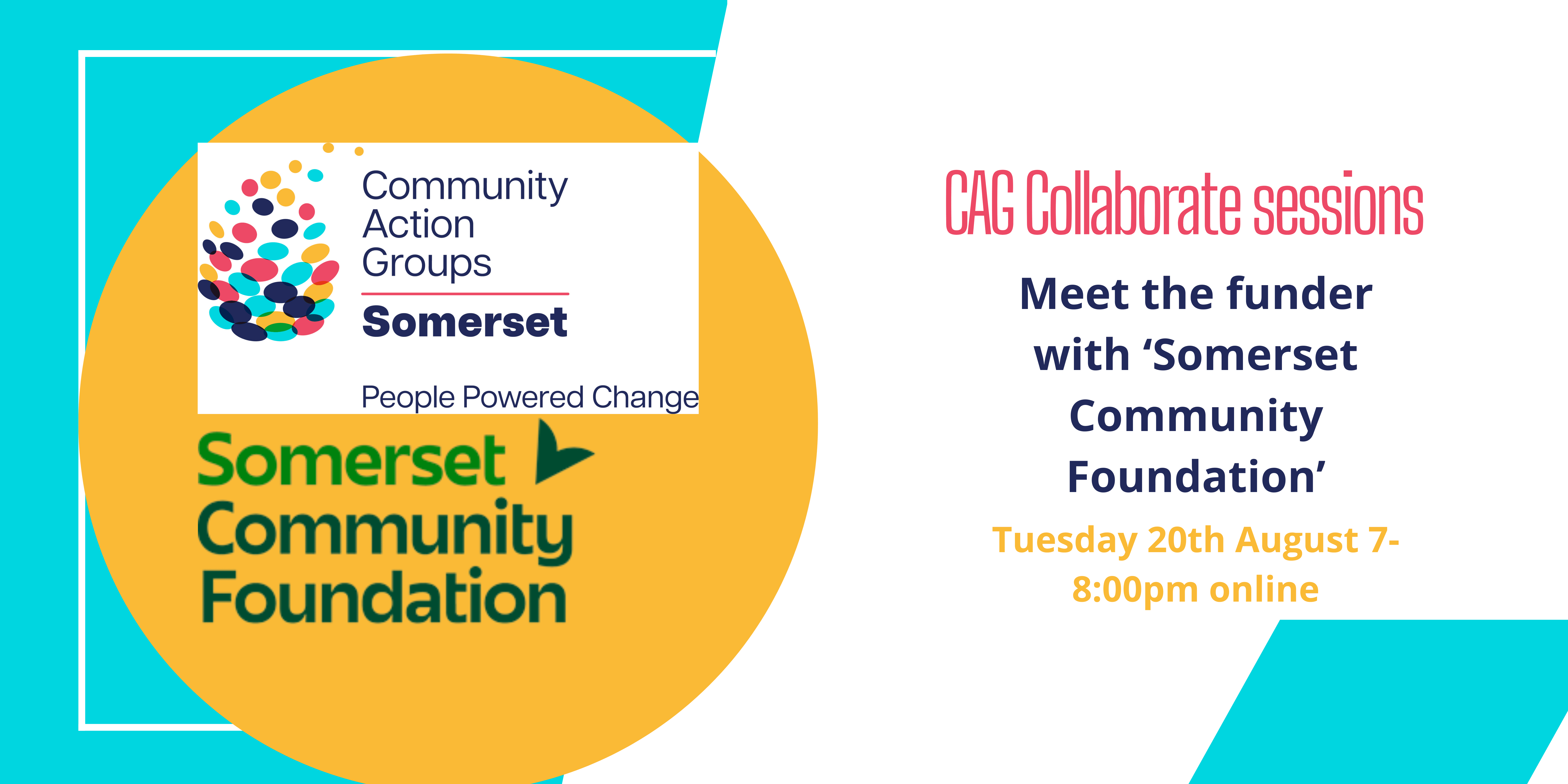 Virtual EventFree online event for all CAG members on Tuesday 20th August 7-8:00pm Join us for a 'Meet the Funder' collaborative session with CAG Somerset and Somerset Community Foundation. This session is…